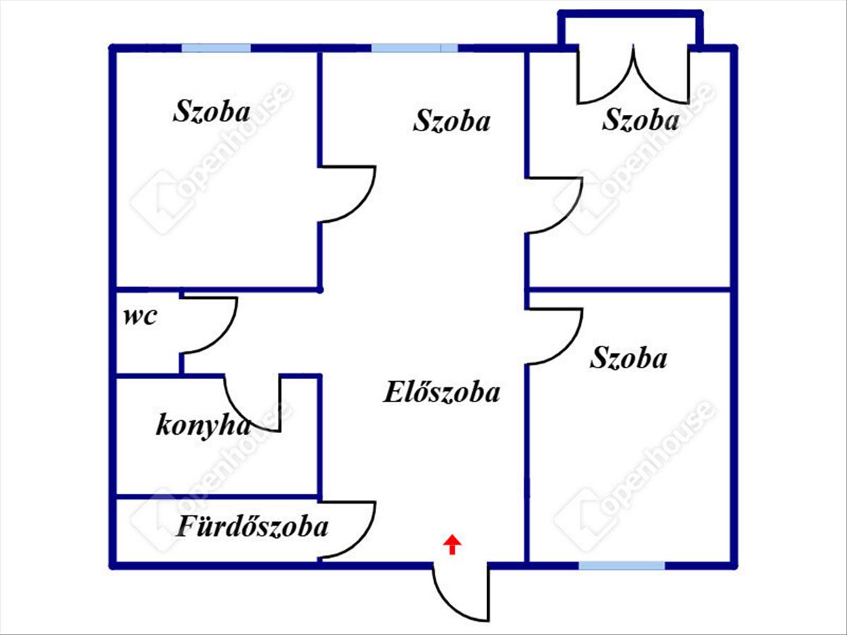 - Az ingatan elrendezése praktikus a tágas nappaliból nyílik, mind a 3 szoba.