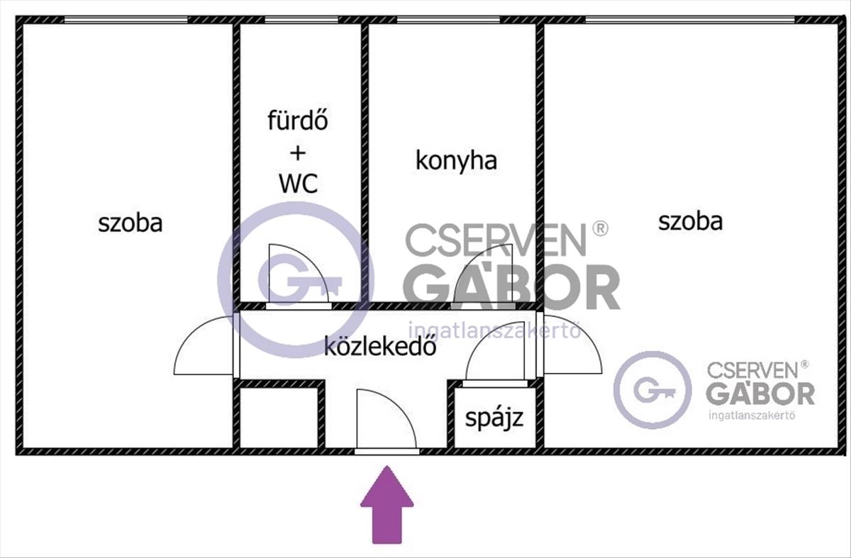 A 49 m2-es lakótér tágas, praktikus elrendezésű. Szobái tágasak, külön bejáratúak és egymástól jól elszeparáltak. a két szoba „között” kapott helyet a konyha, ami méretéből fakadóan étkezőként is szolgál, valamint a fürdő, ami magába foglalja a WC-t is. a fürdő kapcsán kiemelendő, hogy nagyméretű ablakkal rendelkezik, így abszolút világos és jól szellőztethető. a helyiségeket összekötő közlekedőből, a konyhával szemközt még egy spájz is nyílik.