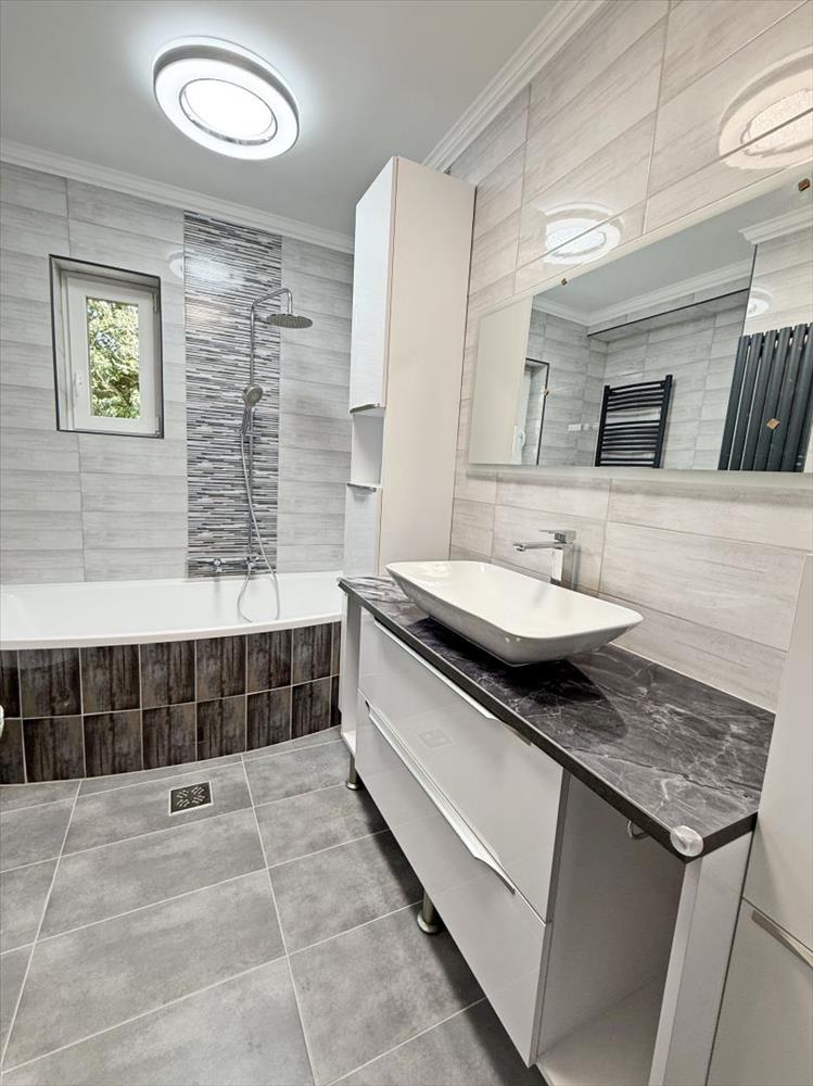 A felújítás során a lakás új villany- és vízvezetékeket, 3 rétegű ablakokat, új beltéri ajtókat, új bejárati ajtókat, új konyhabútort, kondenzációs kazánt, klímát és asztalos által készített beépített bútorokat és burkolatokat kapott.