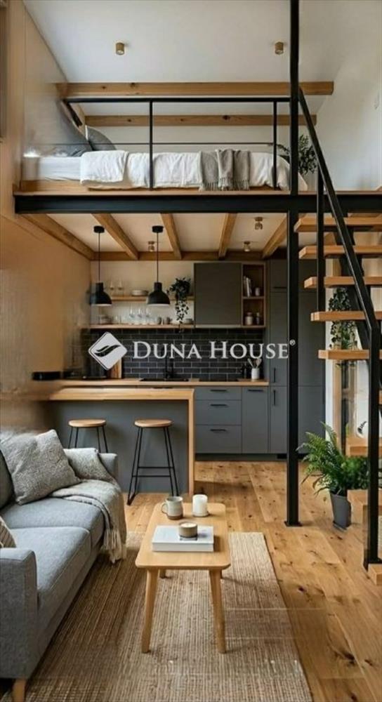 A lakás kompakt, mégis jól élhető: a galérián külön hálórész került kialakításra, míg az alsó szinten nappali és konyha található. a kialakítás modern, praktikus és kifejezetten a mai igényekhez igazodik.