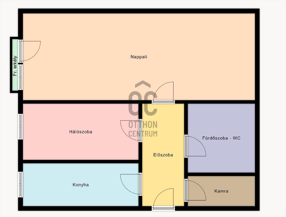 - 42 m2-es, 2 külön nyíló szobás