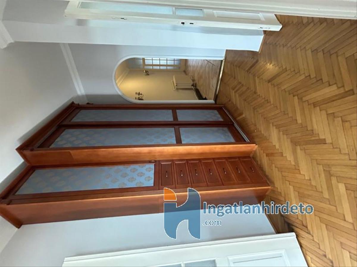 A terek nagyvonalúak, a három külön nyíló szoba valóban használható méretű, nincs kompromisszum. a lakás elrendezése átgondolt, kényelmes: külön fürdő és wc, konyha kamrával, széles közlekedő, ami akár egy rendelő vagy iroda esetén váróként is működhet.