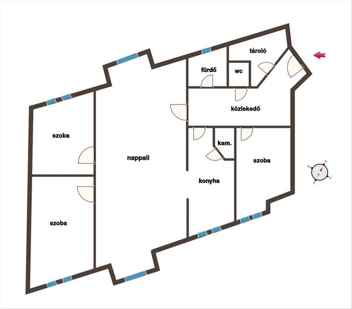 - 3 különnyíló szoba, jól élhető elosztás,