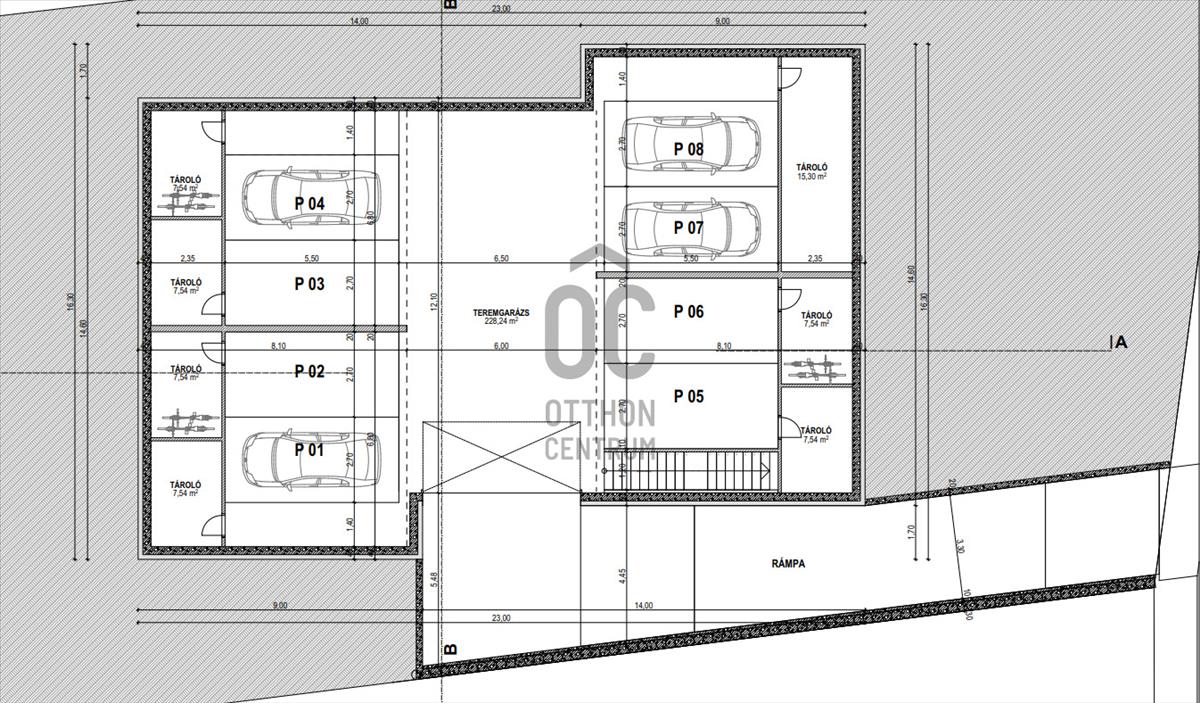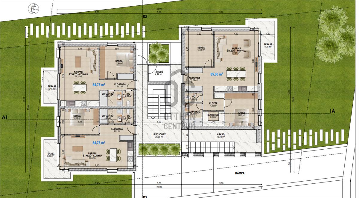 7 Lakásos társasház, földszint + emeleti kialakítással, garázsok pince szinten.