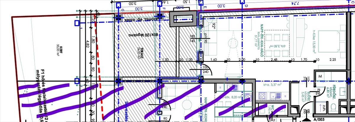 BURKOLATOK: a hidegpadlós helyiségekben kerámia burkolólap, a melegpadlós helyiségekben laminált parketta. a fürdőszobában és a WC-ben 2, 00 m magasságig körben csempeburkolat.