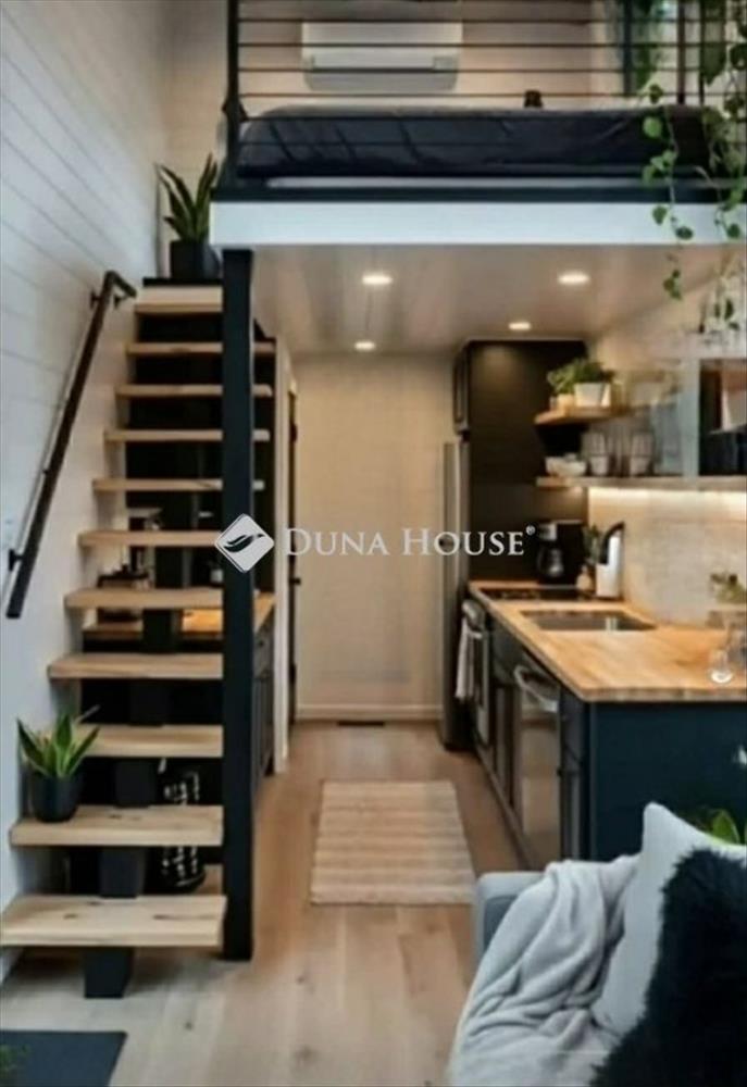 A lakás kompakt, mégis jól élhető: a galérián külön hálórész került kialakításra, míg az alsó szinten nappali és konyha található. a kialakítás modern, praktikus és kifejezetten a mai igényekhez igazodik.