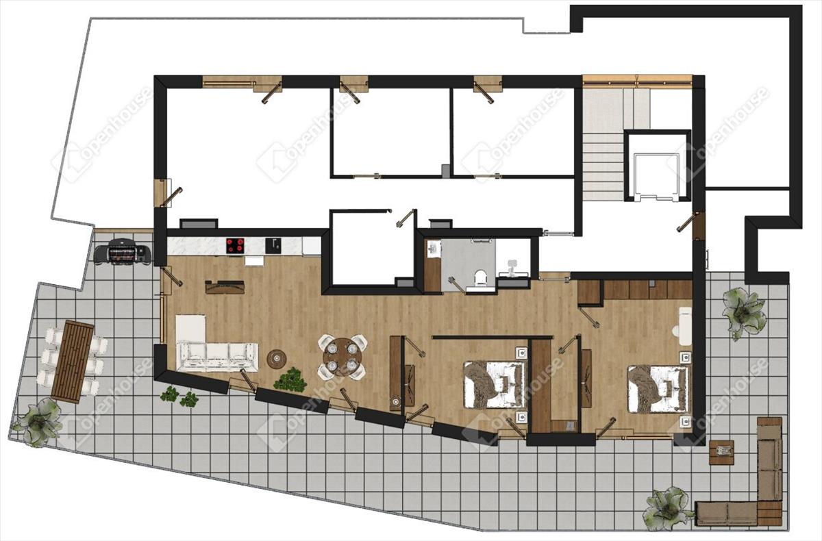 - Ebben a lakásban a hálószobáknak is van terasz kapcsolata.