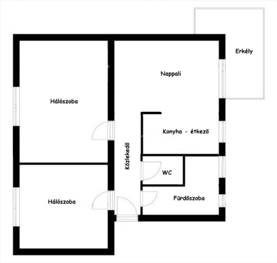 Elosztás: Nappali-konyha-étkező, erkély, 2 hálószoba, fürdőszoba, wc