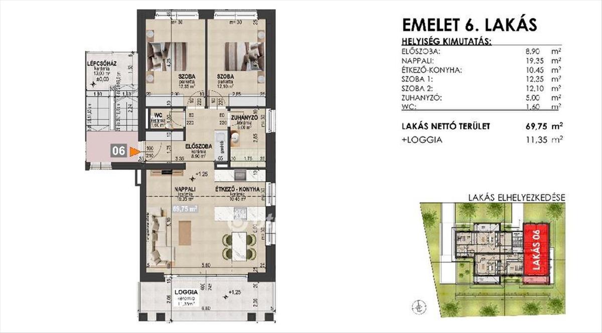 - Lakás 69, 75 m2 + 11, 35 Loggia