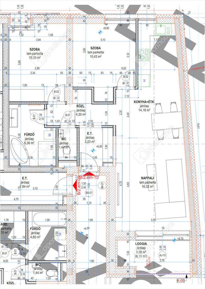 A lakás 66. 85 m2, amelyben nappali, 2 hálószoba, konyha és étkező, fürdőszoba és külön helyiségben wc került kialakításra, illetve tartozik hozzá egy 6. 10 m2 -es loggia.