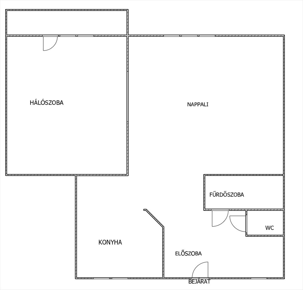 - Tágas nappali, hálószoba loggiával, előszoba, konyha, fürdőszoba, külön wc