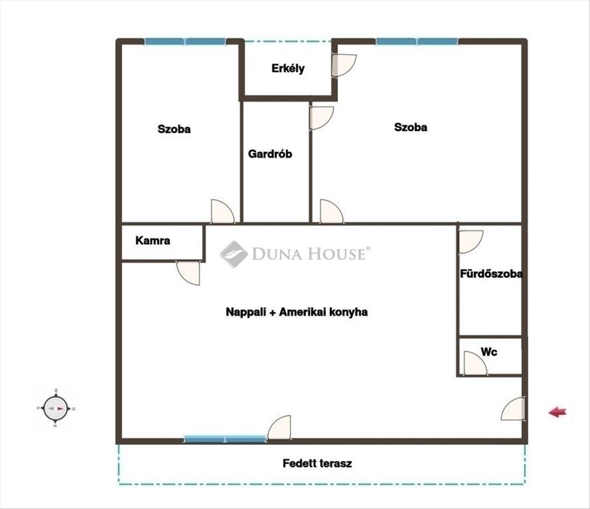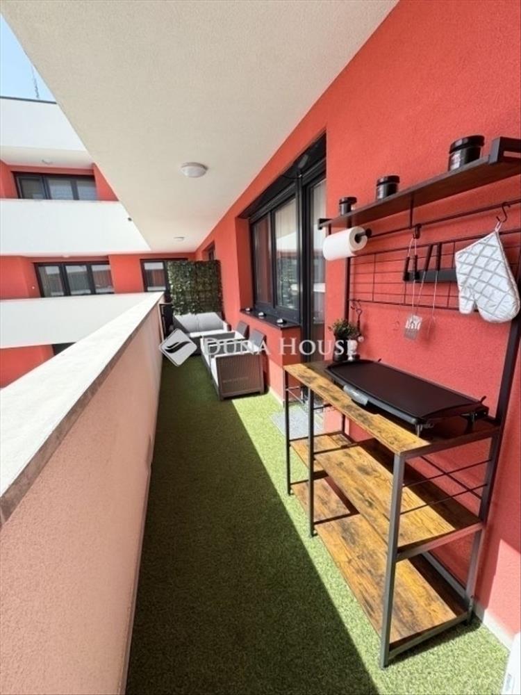 - Helyiségei: minőségi konyha beépített gépekkel és kamrával, kádas fürdőszoba dupla mosdóval, külön vendégmosdó, gardrób és beépített szekrény, 2 erkély- 10 nm-es teraszra közvetlenül a nappaliból míg a kisebb 3 nm-es erkélyre a két szobából jutunk ki.