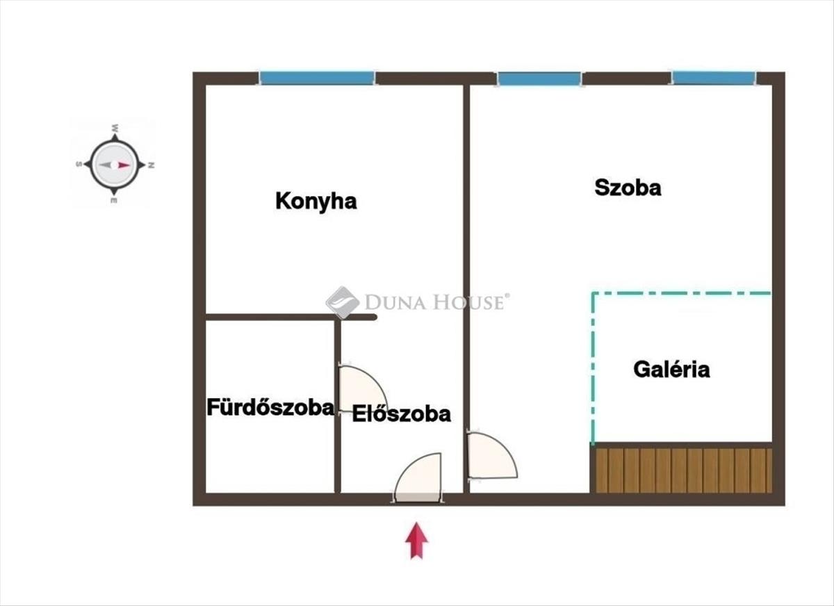 - a lakás egy szoba, konyha, fürdőszoba, előszoba és galéria helyiségekből áll