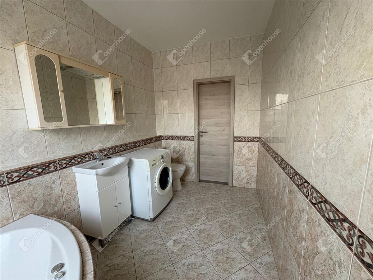 Az emeleten egy nagy méretű fürdőszoba, egy külön wc és három szoba kapott helyet.