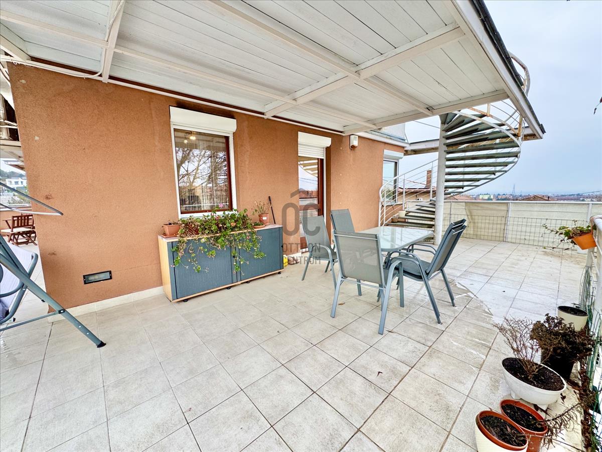 - 1, 5 szobás lakás + 54 m2-es tágas erkély + 100 m2 panorámás TETŐTERASZ