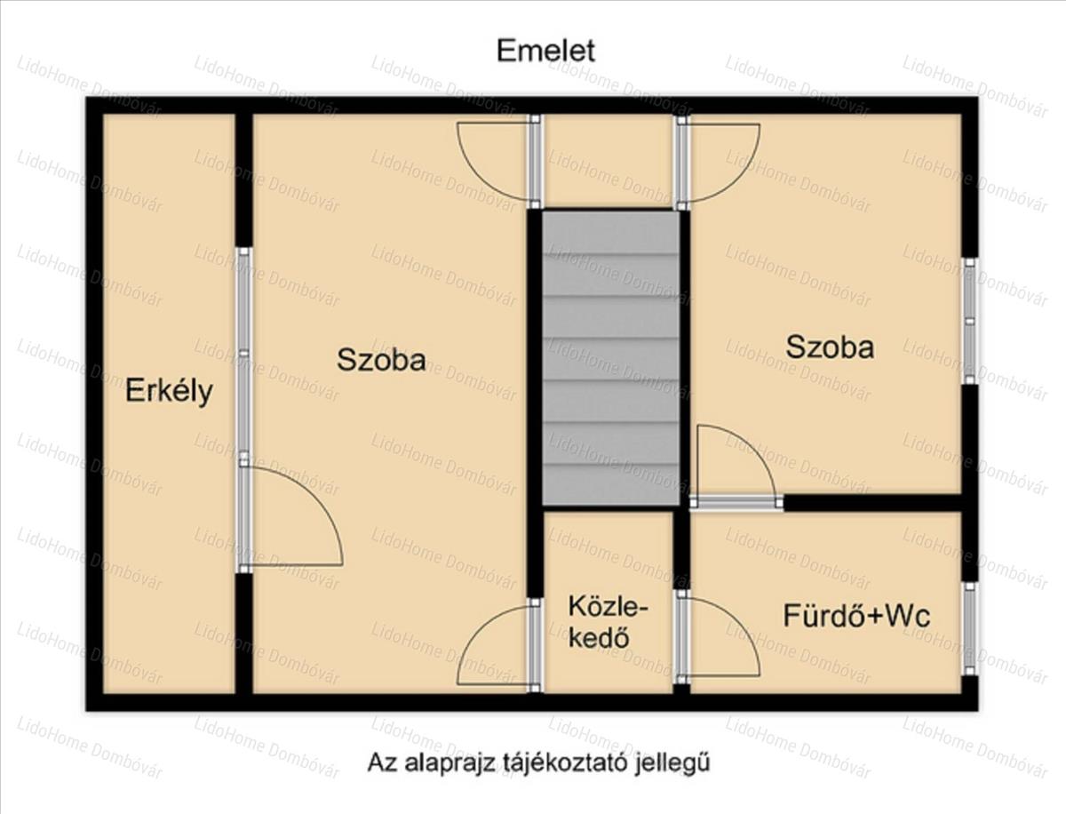 - az emeleten 2 szoba, fürdő+Wc, közlekedő, erkély,