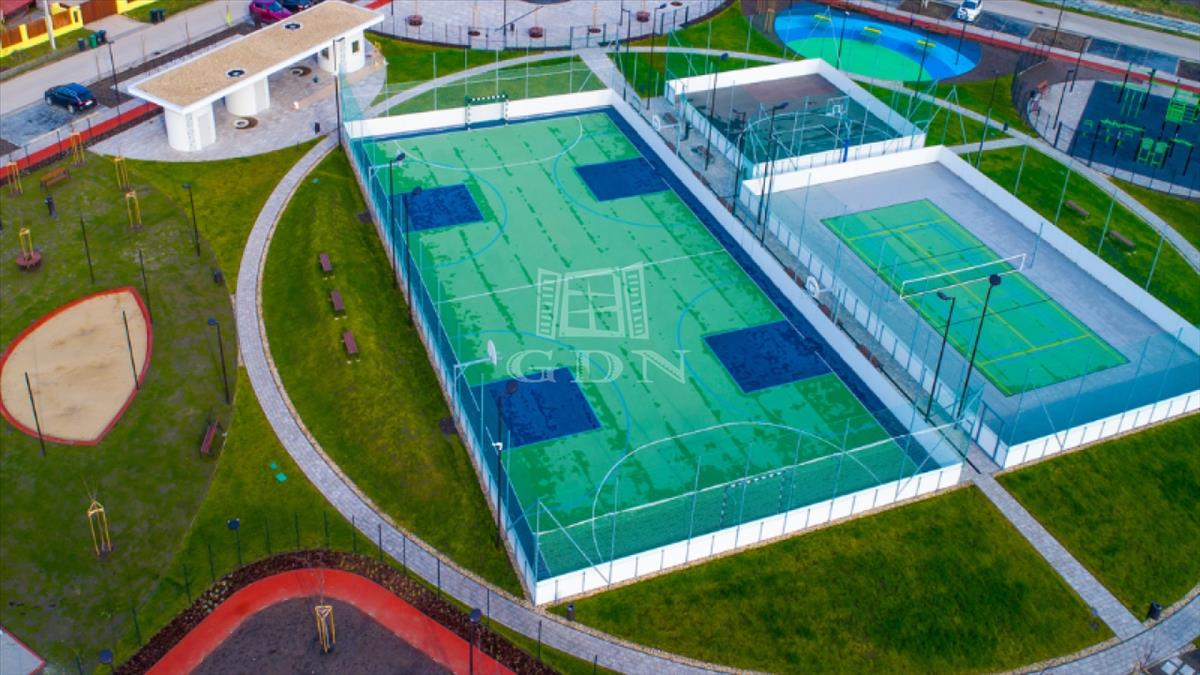 A lakóparkban épült új sportpark számos lehetőséget nyújt a sportolni, pihenni vágyóknak.
