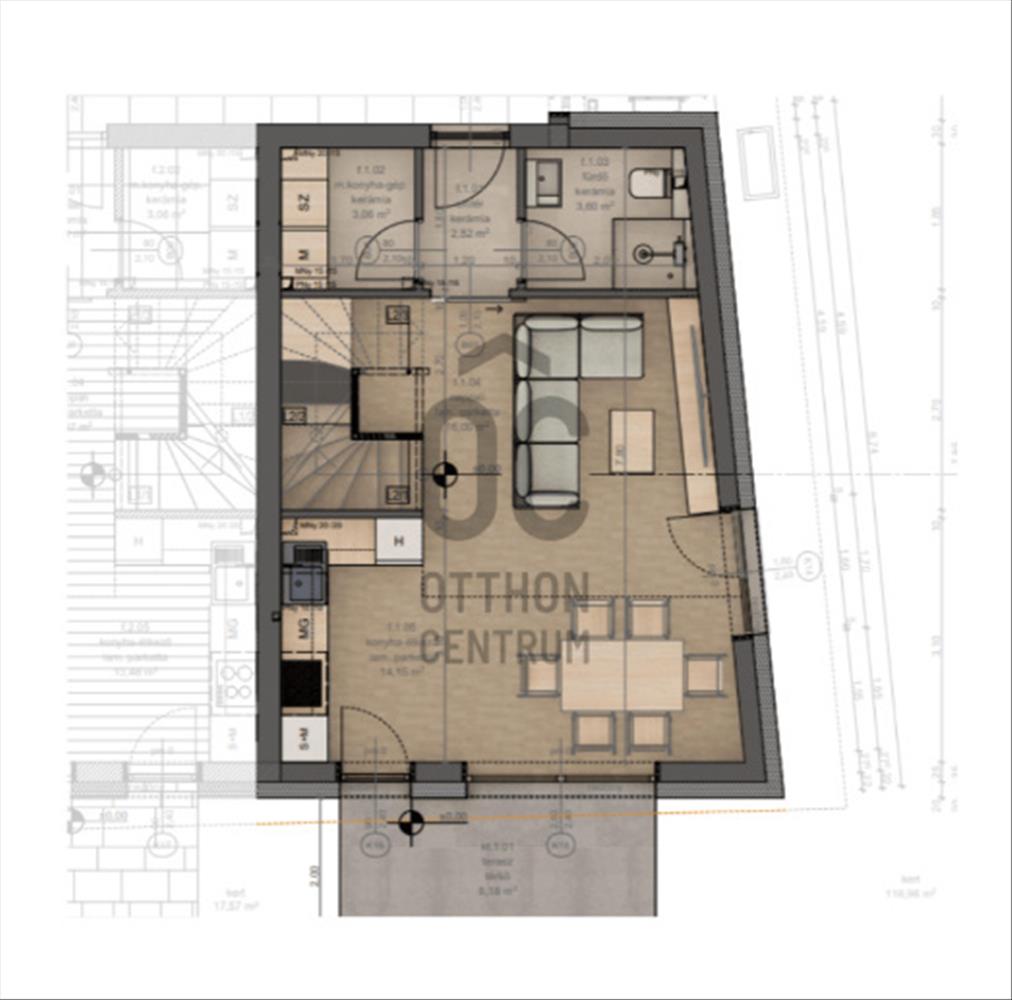 - Saját, kizárólagos használatú kert: 117 m²
