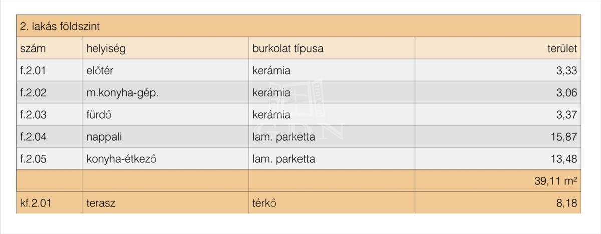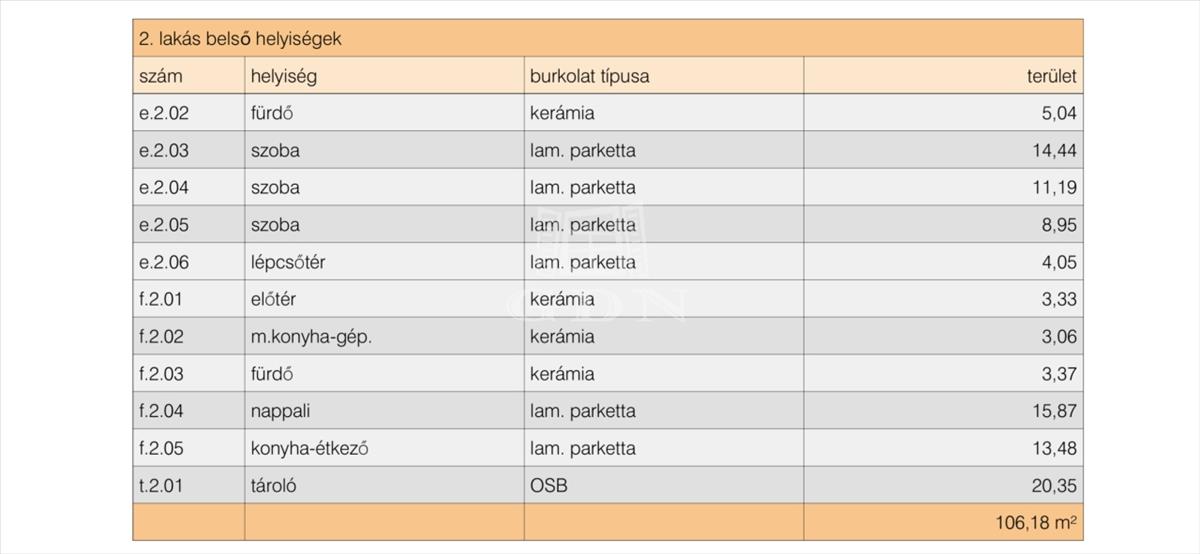 2. Lakás: 106 nm + 8 nm terasz + 18 nm kert + konyhabútor gépekkel = 106. 300. 000 Ft
