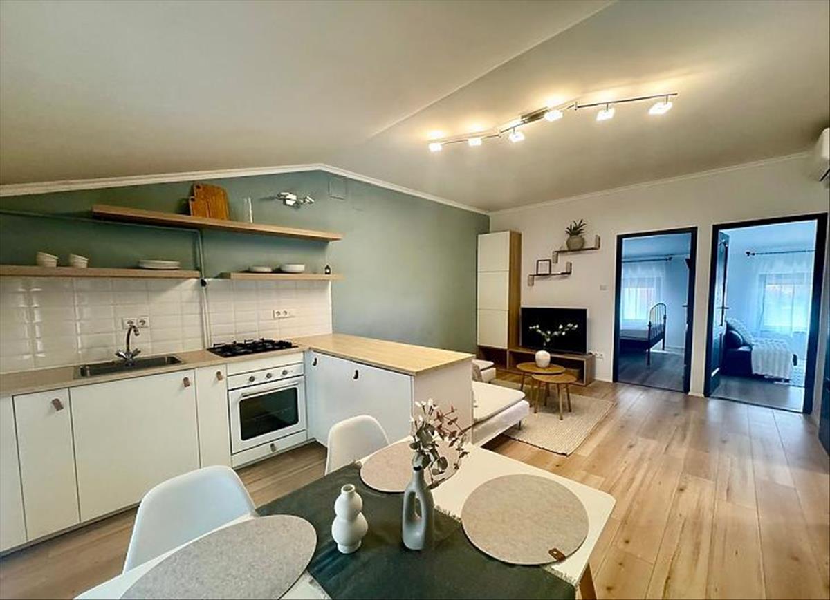 • Világos amerikai konyhás nappali + 2 külön nyíló, kényelmes hálószoba.