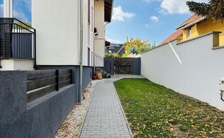 A nappaliból egy 6 m²-es, utcafronti teraszra léphetünk ki, amely hangulatos helyszín lehet a reggeli kávéhoz vagy esti pihenéshez. a 66 m²-es előkert igényesen kialakított, rendezett zöldfelület, amely gondozott környezetet és kellemes megjelenést biztosít az otthonnak.