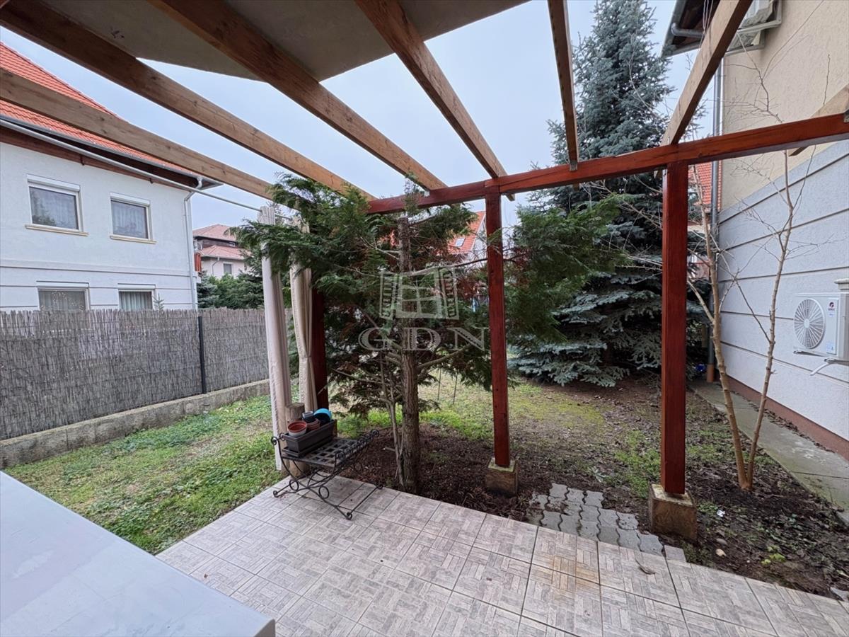 Dunakeszin, Alagliget lakóparkban, 9 lakásos társasházban, kínálunk eladásra egy földszinti, 2+1 fél szobás, dupla komfortos, világos, kitűnő állapotban lévő, kiváló elosztású nagy teraszos, kertkapcsolatos lakást. Konyhája gépesített és kamra/tároló helyiség is tartozik hozzá. a beépített bútorok az ár részét képezik. Parkolás az udvarban saját gépkocsi beállóban és a ház előtt lehetséges. Kiváló választás lehet, ha fontos szempont a városi infrastruktúra de mégis nyugodt környezetre vágyik. a környék csendes és biztonságos. Néhány perc sétára elérhető a bölcsöde, iskola, játszótér, bevásárlási lehetőségek. FIX 3% lakáshitelre megvehető