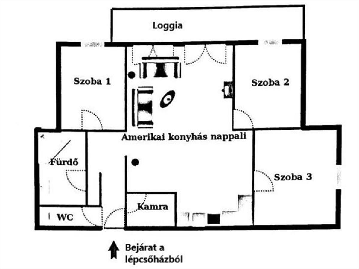 A lakás elrendezése kifejezetten praktikus, minden megtalálható benne, amire egy családnak szüksége lehet: