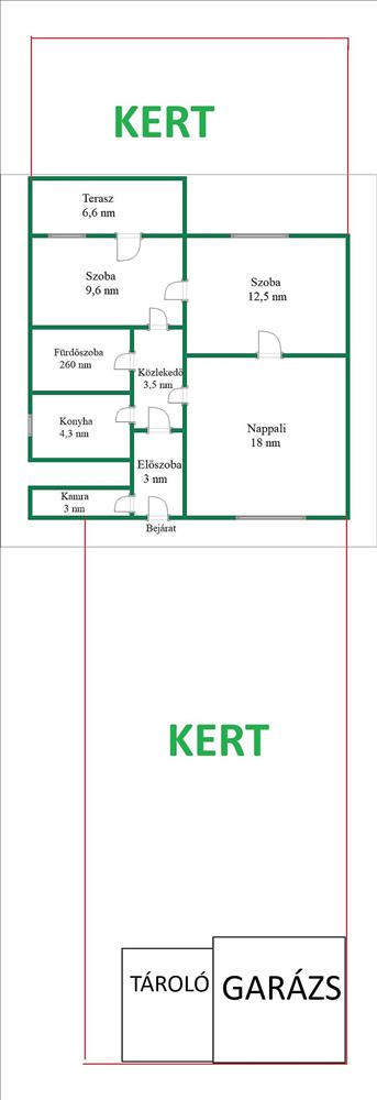 A saját körbekerített kert végében garázs, és tárlásra alkalmas melléképület található.