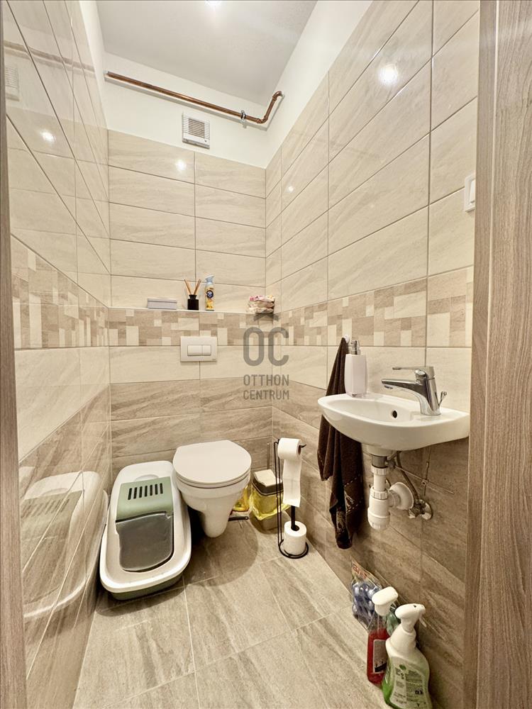 A fűtést és meleg vizet egy a fürdőszobában elhelyezett Westen kombi kondenzációs takarékos gáz kazán szolgáltatja, amelyhez a nappaliban digitális Computerm vezérlő tartozik. a lakás egyedi víz-, gáz- és villanyórával rendelkezik. a fürdőszobában egy törölközőszárítós radiátor is beépítésre került. a fürdő és a wc külön helyiség.
