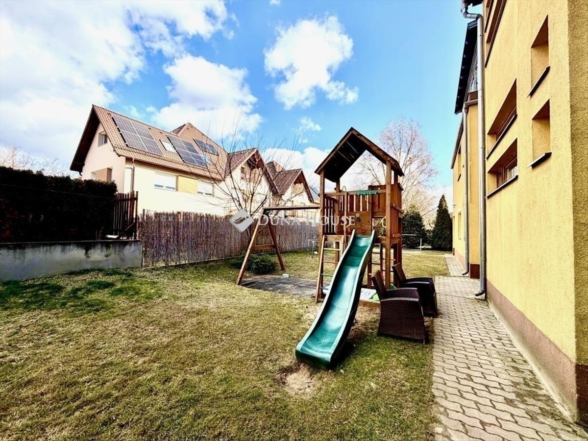 Családbarát, napfényes otthon az Alagliget - lakóparkban! Dunakeszi Alagliget -lakópark csendes, zsákutcás részén eladó egy 4 szobás, gyönyör napfényes, első emeleti lakás egy saját kertes, játszóteres 9 lakásos társasházban. Ideális kisgyermekes családoknak:-átmenőforgalomtól mentes utca- közös udvar játszótérrel- nyugodt, kis létszámú lakóközösség-bölcsőde, óvoda, iskola, orvosi rendelő, bevásárlási lehetőség 500 m-en belülA lakás 2025-ben, saját részre felújított: megújult fürdőszoba új burkolatok a közösségi terekben, új bejárati ajtó. a nappali, konyha, étkező világos, tágas, valódi családi központ. Klíma, redőny, szúnyogháló, beépített szekrények szolgálják a kényelmet. Alacsony rezsi, saját kertészAz ingatlan külön garázzsal rendelkezik, mely 10 Millió forintért kötelezően megvásárolandó! Azonnal költözhető, élhető, szerethető otthon kiváló infrastruktúrával. Ingyenes hiteltanácsadással szívesen segítek! Várom megtisztelő hívását hétvégén is! FIX 3% lakáshitelre megvehető