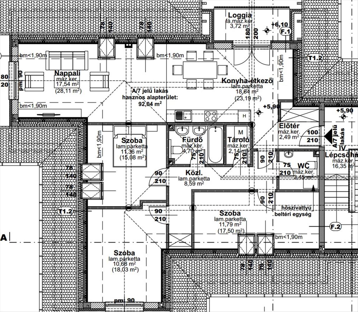 -Minden helyiségben padlófűtés fan-coil hűtés