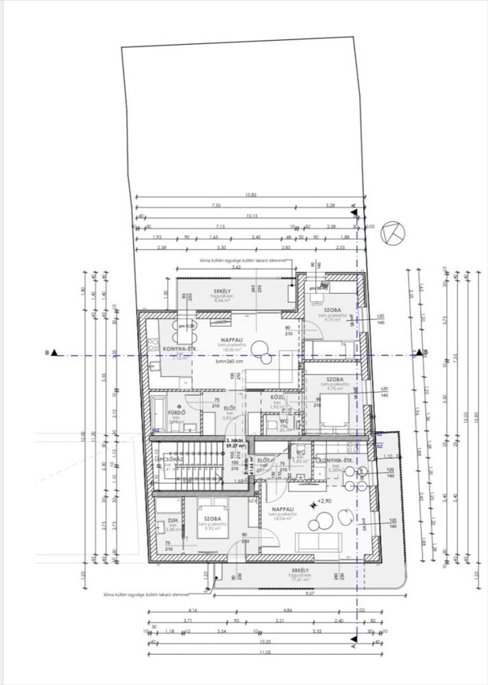 - Tetőtér 4. LAKÁS:81, 26nm (hasznos: 61, 72 nm) + 23, 66 nm Terasz +2, 52 nm Erkély ~ 2 nm tároló.