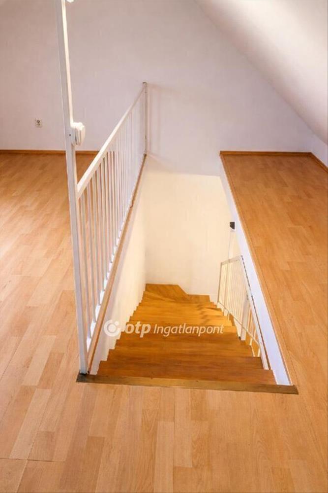 Az ingatlanba belépve egy előszoba? Közlekedő? Folyosó fogad bennünket, ahonnan elérhető a konyha és az étkező, valamint egy fürdőszoba, amely egy helyiségben kapott helyet a mellékhelyiséggel, továbbá egy tágas, nagyméretű szoba is, amely franciaerkélyes kialakításának köszönhetően kellemes fényviszonyokkal rendelkezik, és amelyből egy kényelmes lépcső vezet fel a tetőtérbe, ahol egy egylégterű, tetőtéri ablakkal ellátott szoba került kialakításra, így a felső szint akár hálószobaként, dolgozószobaként vagy egyéb funkcióra is kiválóan hasznosítható.