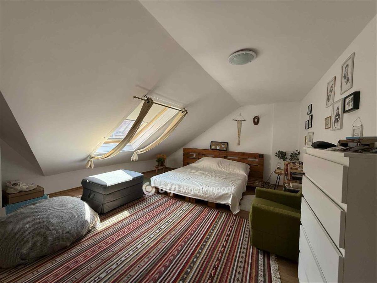 Már a bejáratnál érezni lehet, hogy ez a lakás más. Az előszobából egy világos, modern, gépesített konyhába lépünk, ahol öröm a főzés, a tágas nappaliban pedig kényelmesen elfér a család és a barátok. a nappaliból egy elegáns lépcső vezet a hangulatos tetőtérbe, ahol két hálószoba és egy fürdőszoba várja, hogy az új tulajdonos saját ízlésére alakítsa.