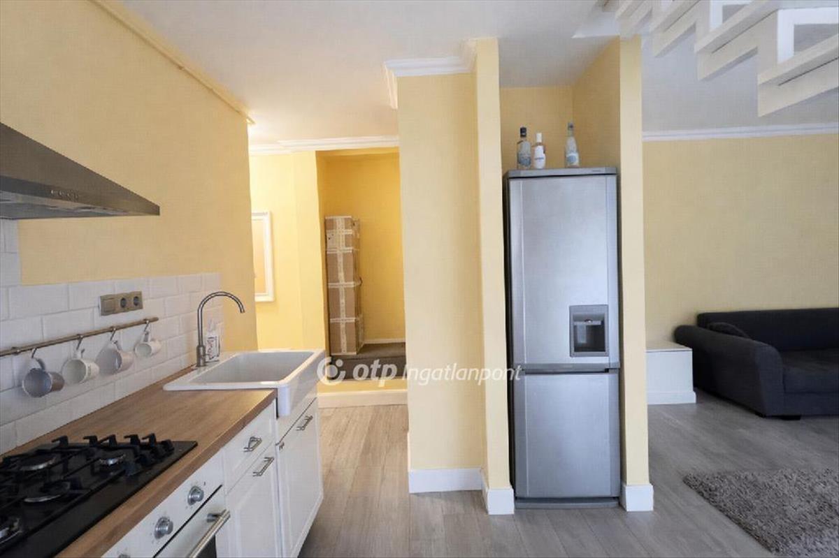 Az ingatlan alsó szintjén egy tágas, világos amerikai konyhás nappali? Étkező került kialakításra, amely közvetlen kapcsolatban áll az erkéllyel, így a lakótér egész nap természetes fényben úszik, valamint ezen a szinten kapott helyet egy praktikus, zuhanyzós fürdőszoba is, amely a mindennapi használat során rendkívül kényelmes megoldást nyújt.