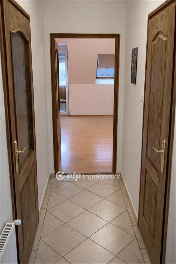 Az ingatlanba belépve egy előszoba? Közlekedő? Folyosó fogad bennünket, ahonnan elérhető a konyha és az étkező, valamint egy fürdőszoba, amely egy helyiségben kapott helyet a mellékhelyiséggel, továbbá egy tágas, nagyméretű szoba is, amely franciaerkélyes kialakításának köszönhetően kellemes fényviszonyokkal rendelkezik, és amelyből egy kényelmes lépcső vezet fel a tetőtérbe, ahol egy egylégterű, tetőtéri ablakkal ellátott szoba került kialakításra, így a felső szint akár hálószobaként, dolgozószobaként vagy egyéb funkcióra is kiválóan hasznosítható.