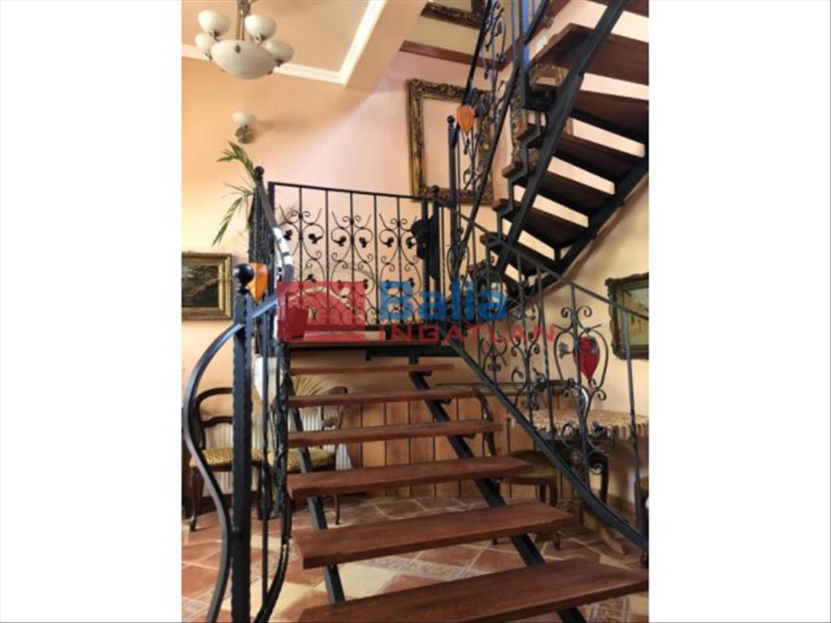 A földszinten egy előtérbe érkezünk, ahol egy csodálatos belső lépcső vezet az emeletre. a lépcső tölgyfából és kovácsoltvasból készült, ami ékessége az egész épületnek, csak úgy mint a korhű burkolatok, intarziás parketta, fa oszlopok. Minden a modern és a régi kor összhangjáról tanúskodik.