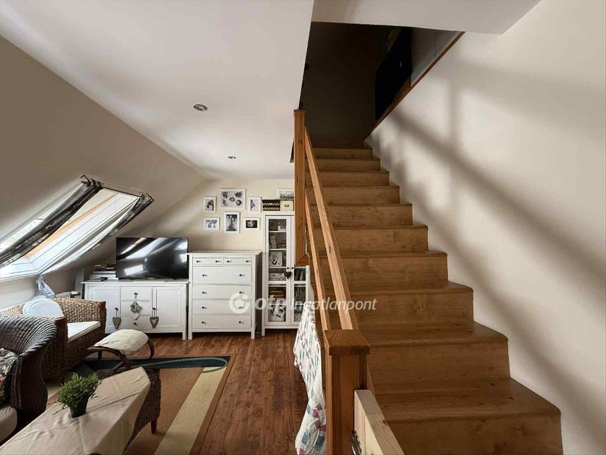 Már a bejáratnál érezni lehet, hogy ez a lakás más. Az előszobából egy világos, modern, gépesített konyhába lépünk, ahol öröm a főzés, a tágas nappaliban pedig kényelmesen elfér a család és a barátok. a nappaliból egy elegáns lépcső vezet a hangulatos tetőtérbe, ahol két hálószoba és egy fürdőszoba várja, hogy az új tulajdonos saját ízlésére alakítsa.
