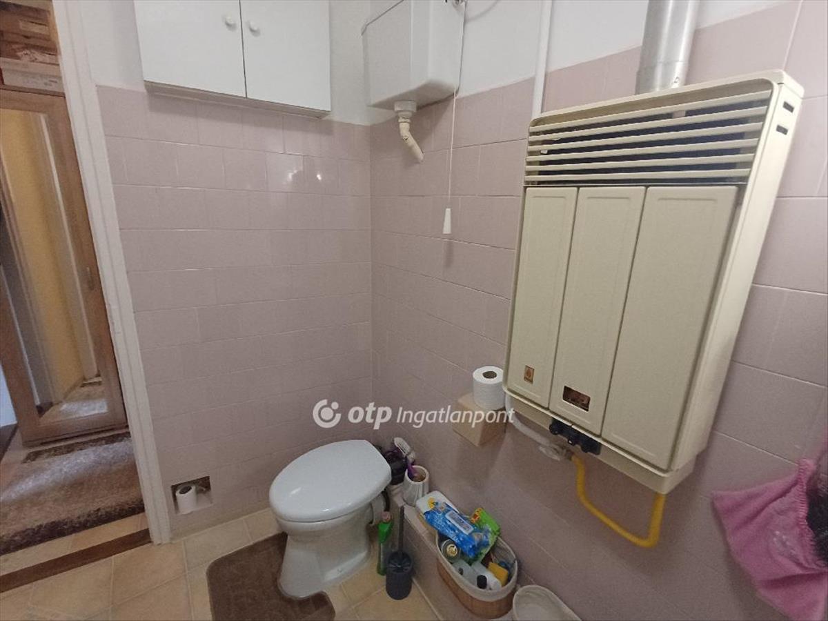 Az ingatlan egy 18, 5 nm-es, a csendes belső udvarra néző nagy szobával, egy 9, 5 nm-es konyhával, abból nyíló 3 nm-es kamrával, egy külön-bejáratú WC-s, 5 nm-es fürdőszobával, egy 4 nm-es előszobával és a lakószinten található 5 nm-es tárolóval rendelkezik, fűtéséről gázkonvektorok, meleg víz ellátásáról átfolyós gáz vízmelegítő kazán gondoskodik.
