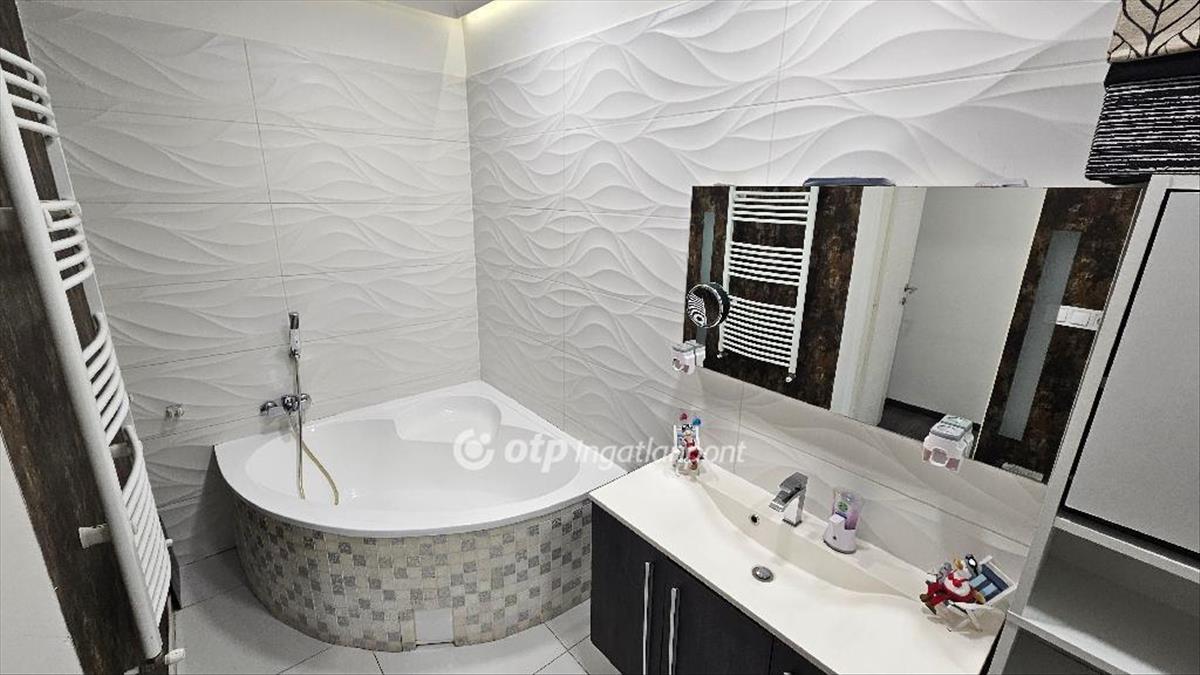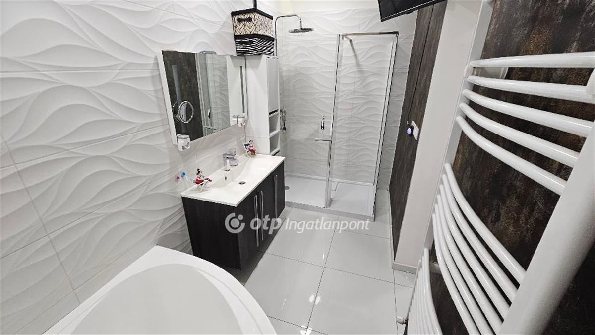 Heves megye, Almagyar városrész, 128/108 nm-es, jó állapotú, örökpanorámás (Eged-hegy), duplakomfortos, rezsimentes lakás eladó. a belső kétszintes ingatlan egy 2021-ben átadott, ytong falazatú (50 cm), háromlakásos sorház első emeletén helyezkedik el. a bejárat és az előszoba a földszinten található. Az emeleten amerikai konyhás nappalit, két hálószobát, fürdőszobát (sarokkáddal és zuhanyzóval), WC-t, háztartási helyiséget, közlekedőt és két erkélyt (16 nm, 7 nm) alakítottak ki, míg az idei évben beépített tetőtérben három szoba, fürdőszoba és közlekedő kapott helyet. a lakás saját használatú udvarral/kerttel rendelkezik, melyet a nappaliból nyíló erkélyről, lépcsőn közelíthetünk meg. Az ingatlan energiaellátását napelemek biztosítják, költségmentessé téve a fűtést és az összes elektromos készülék használatát is. a fűtésről elektromos kazán gondoskodik radiátorok segítségével, a komfortérzetet hűtő-fűtő klímák (3, 5 kW) növelik. a meleg vízellátást villanybojler biztosítja. Háromrétegű műanyag ablakai redőnnyel szereltek. a lakáshoz, négy autó parkolását biztosító nyílt beállót alakítottak ki, melyből kettő fedett. Méretének, kialakításnak és elhelyezkedésének köszönhetően az ideális otthon lehetőségét kínálja többgyermekes család számára. Megegyezés szerint, a vételárba, kisebb lakás beszámítására van lehetőség. Amennyiben felkeltették érdeklődését a leírtak, egyeztessünk szóban egy megtekintés lehetőségéről! Ingatlanirodánk ügyvédi háttérrel, babaváró hitel, CSOK plusz, valamint kamatkedvezményes hitel ügyintézésével támogatja ügyfelei ingatlanvásárlását! Hitel.hu - Hasonlítsa össze a bankok lakáshitel ajánlatait