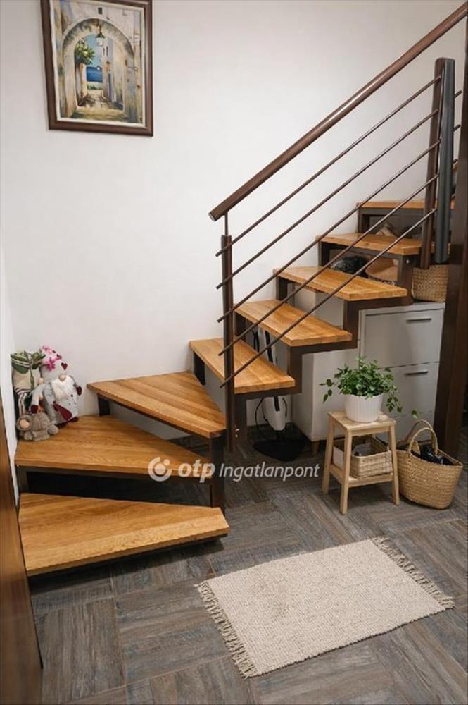 Az ingatlan alsó szintjén egy önálló belső lépcsőtér található, amely felvezet a felső szinten kialakított tágas, napfényes amerikai konyhás nappaliba, ahonnan a lakás további helyiségei: két és fél hálószoba, spejz, tágas fürdőszoba, valamint külön wc kézmosóval nyílnak, így a közösségi és privát terek praktikusan elkülönülnek, mégis harmonikus egységet alkotnak.