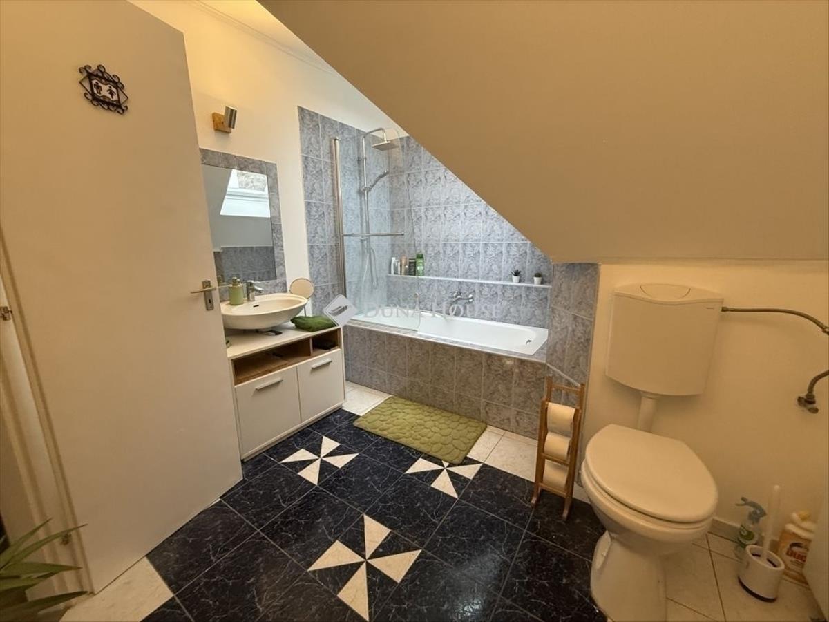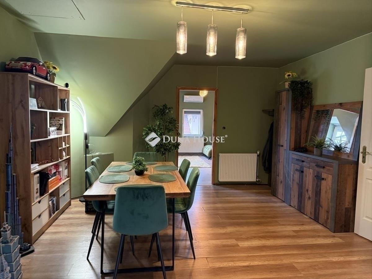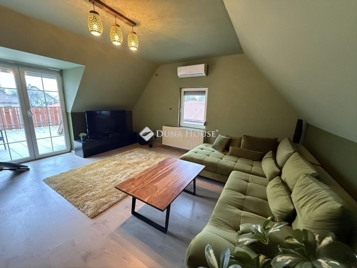 85 m2 lakás 24 m2 tetőterasszal eladó Érd Dombosváros részén! Érd Dombosváros csendes mellékutcájában egy 3 lakásos házban eladó egy tetőtéri lakás. a másik 2 lakás a földszinten található. Saját lépcsőházzal rendelkezik, mely előszobaként is funkcionálhat. a lakás nettó 85 m2-es plusz 24 m2-es terasszal. Helyiségek: - Konyha étkező helyiség- Nappali - 2 szoba - Fürdőszoba wc-vel- Földszinten tároló helyiség- lakásból megközelíthető padlástér, mely pakolhatóMűszaki adatok: - tégla építésű ház - Kondenzációs gázkazán, mindenhol radiátoros hőleadással - 5 cm homlokzati hőszigetelés - cserépfedés- 2 rétegű műanyag nyílászárók redőnnyel felszerelve- 1 db hűtő-fűtő klíma készülékA lakáshoz tartozik kocsibeálló, mely saját külön kapuval rendelkezik és akár 2 autóval is lehet parkolni. Itt kialakításra került egy kis kiülő helyiség is. a lakások ügyvédi használati megosztóval kerültek kialakításra. Csok plusz és Otthon start típusú hitelre alkalmas az ingatlan. Iskola, óvoda, bevásárlási lehetőségek perceken belül elérhetőek. További információkért hívjon bizalommal. FIX 3% lakáshitelre megvehető