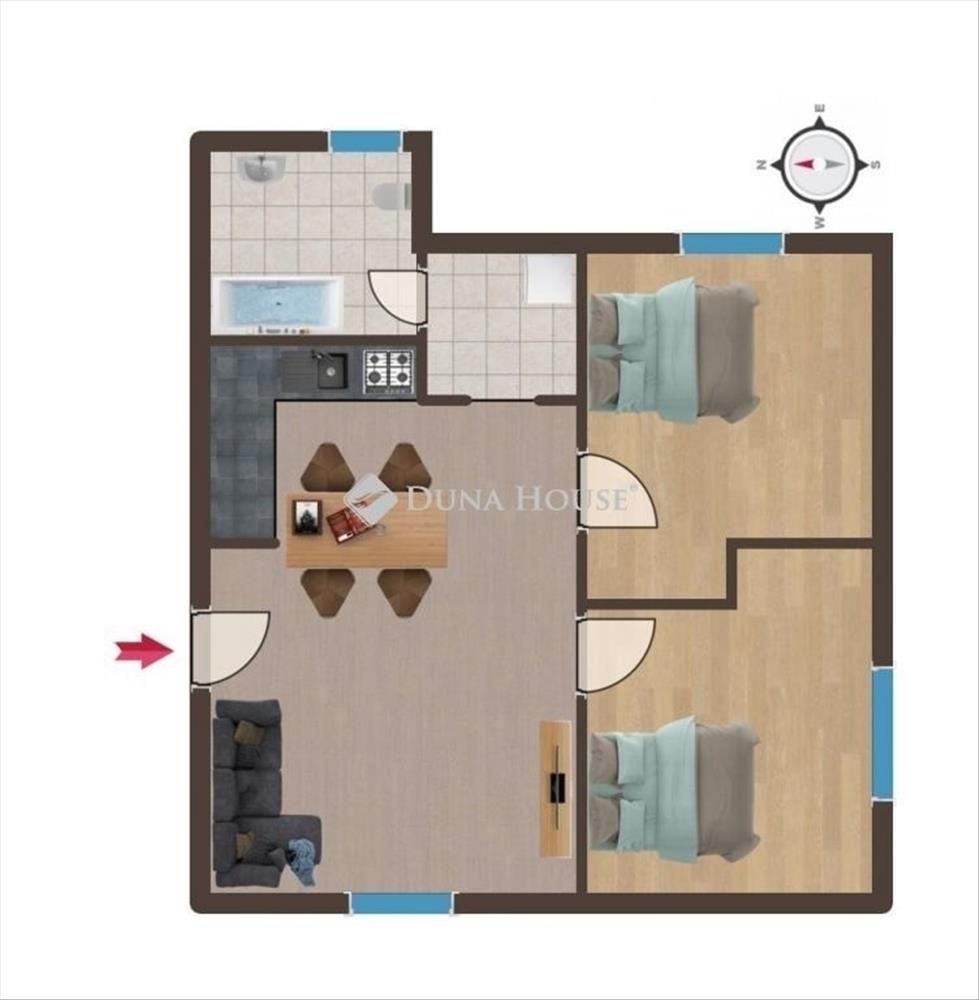 A délnyugati tájolásnak köszönhetően a lakás egész nap világos, kellemes hangulatú, miközben energiatakarékosan fenntartható. Az ingatlan elosztása praktikus és jól élhető:amerikai konyhás nappalikét külön nyíló hálószoba háztartási helyiség fürdőszoba WC-velIdeális választás pároknak, kisebb családoknak vagy akár befektetési célra is.