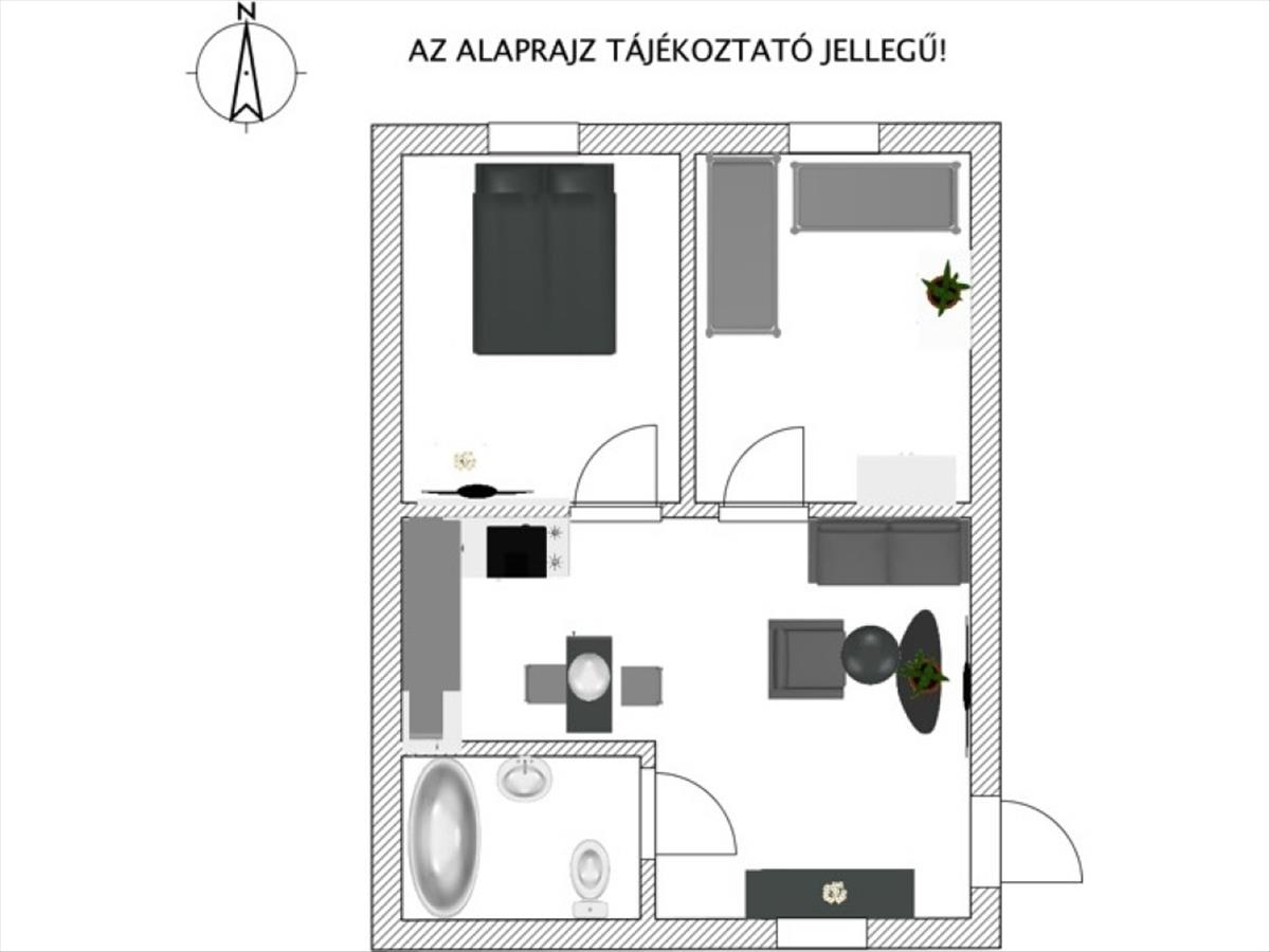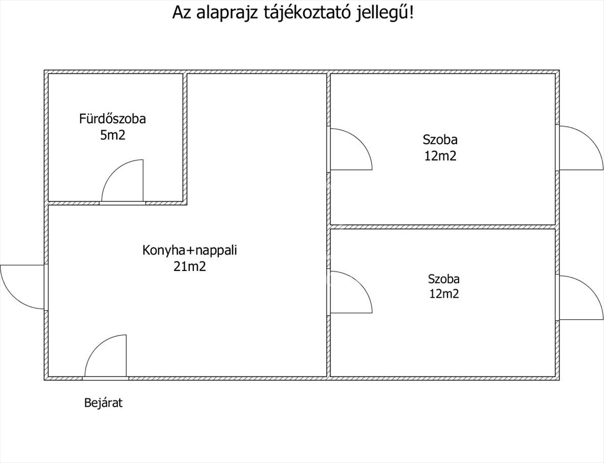 - a lakás hasznos alapterülete 50 m2, mely egy 5m2-es fürdőszobából, egy 21 m2-es amerikai konyhás nappaliból kettő 12 m2-es hálószobából áll.