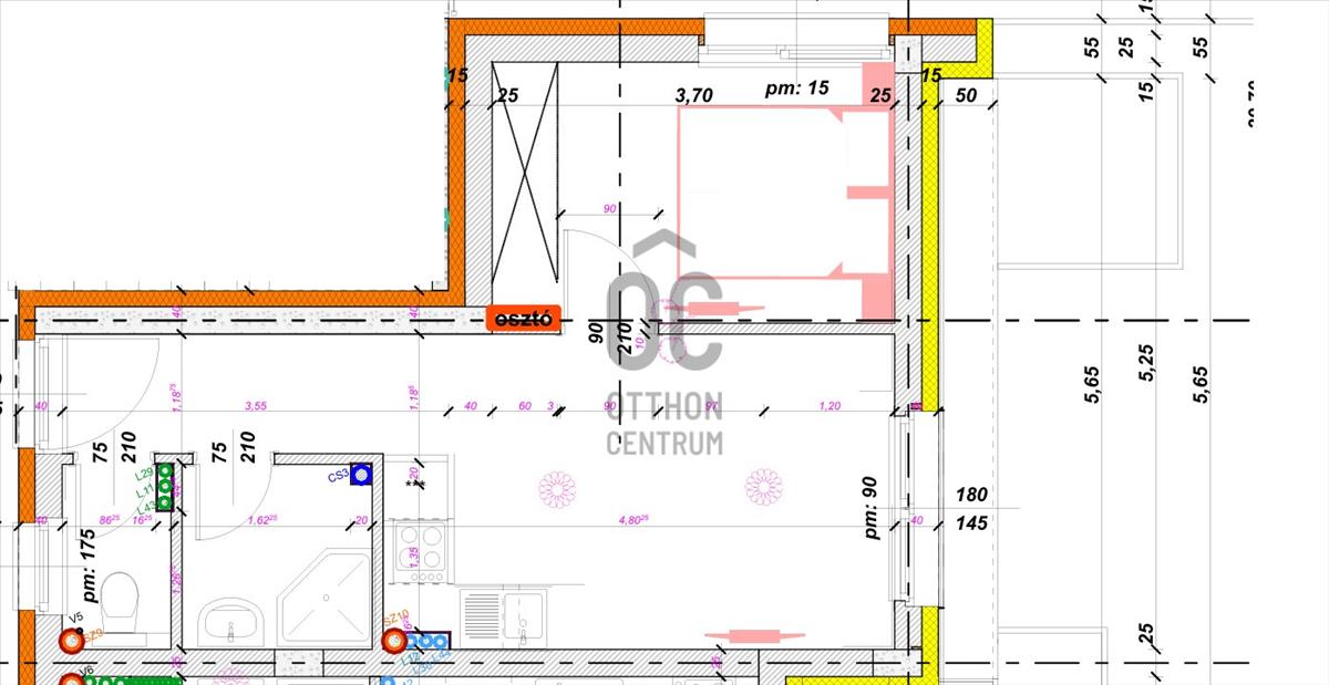 - konnektorok elhelyezése a Nappali 7db, Étkező 2db, Konyha 6db, Szoba 4db, Fürdő 2db, Közlekedő 1db.