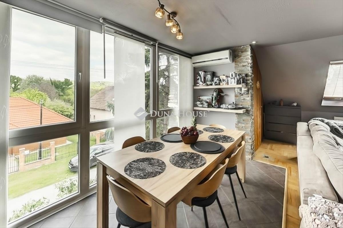 Eladó egy emeleti, 113 nm lakás, garázzsal, tárolóval és zöld KERTTEL! Budapest mindössze 20 perc autóval vagy tömegközlekedéssel (busz, vonat néhány perc sétára)Csendes környék, barátságos szomszédokIskolák, óvodák, boltok, orvos 10 perces sétáraFóti-tó és Somlyó hegy pár perc gyalog tökéletes kirándulási lehetőségAz amerikai konyhás nappali ablakokból pazar kilátás nyílik a Somlyóra! a házról:Téglaépület (1981), több felújításon esett át (2000: teljes felújítás, 2010: tetőcsere és 15 cm-es külső szigetelés)2 szintes + szuterénszint + garázsA lakás:Nettó 113 m² alapterületA földszinten a bejáratnál egy szoba. Az emeleten 3 szoba + amerikai konyhás nappali, kamra, gardrób + fürdőszoba + külön WCMűanyag nyílászárók, klíma, beépített szekrényekVegyes tüzelésű kazán és gázbojlerA zöld kertnek is 200 nm-es része a lakáshoz tartozik, ahol még egy fúrt kút is segít a locsolásban. Nagyon fontos, hogy a megosztás úgy történt, hogy nincs közös terület, minda két lakás és kert teljesen elkerített, külön közlekedhető. a villanyóra már most külön van, a víz és a gáz óra meg szintén külön lesz szedve. Mindezekről egy ügyvéd által készített, fölhivatalhoz beadott használati megosztás dokumentum lesz. Az ingatlan hitelképes és CSOK képes és megfelel az Otthon Start programnak is.Referencia szám: lk050960 FIX 3% lakáshitelre megvehető