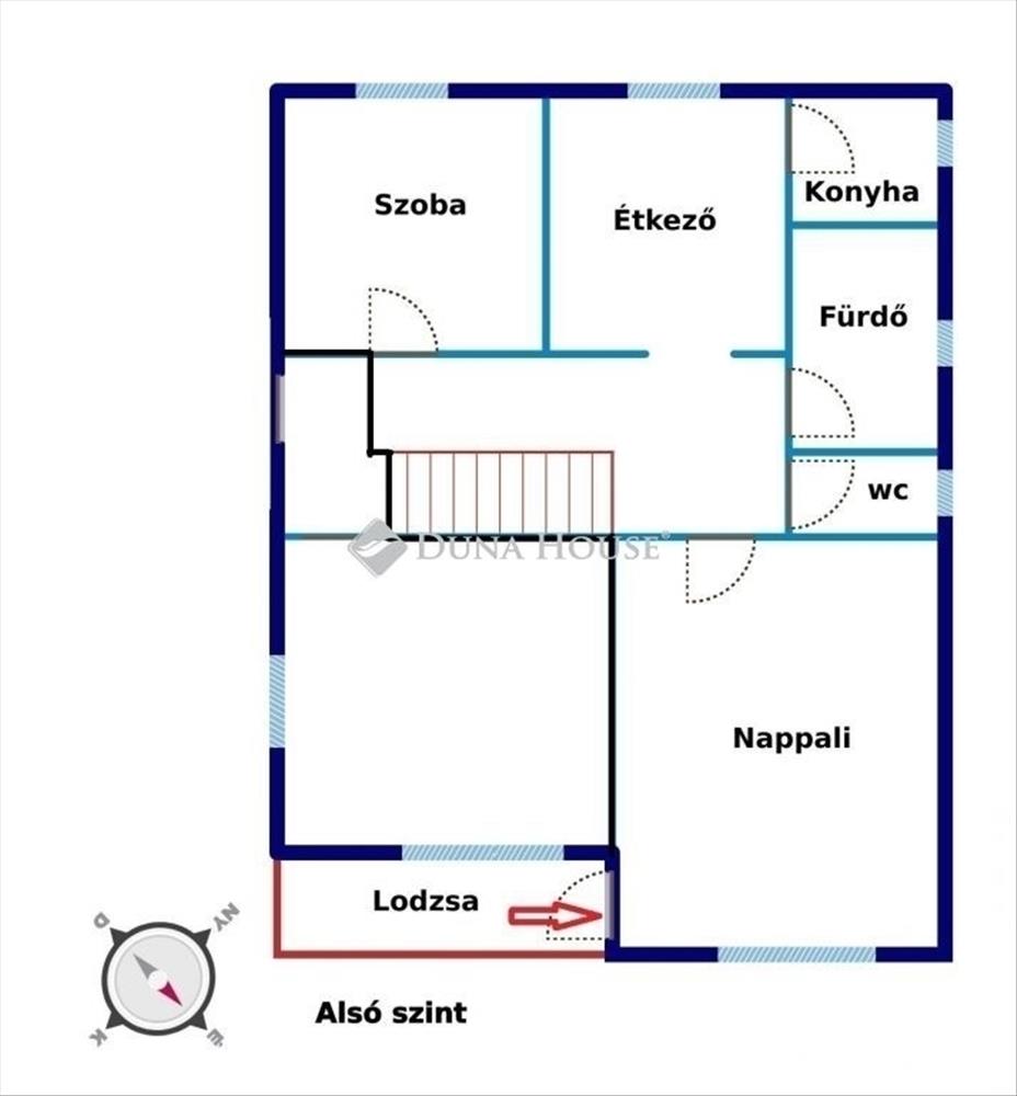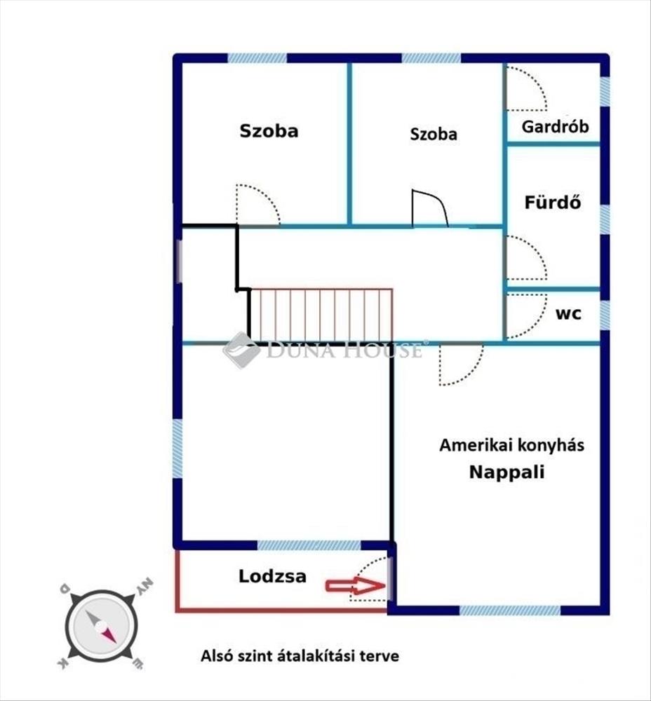 Az elrendezés könnyedén átalakítható: kialakítható 2 szoba + amerikai konyhás nappali elosztás is.