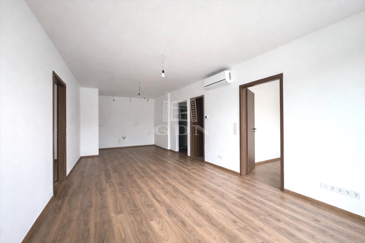 A lakás elosztása kiváló: előszoba, külön wc, fürdőszoba, amerikai konyhás nappali és két hálószoba került kialakításra. a nappaliból és mindkét hálószobából közvetlen kijárat nyílik a két erkélyre, amelyek mérete 4, 5 m² és 8, 8 m².