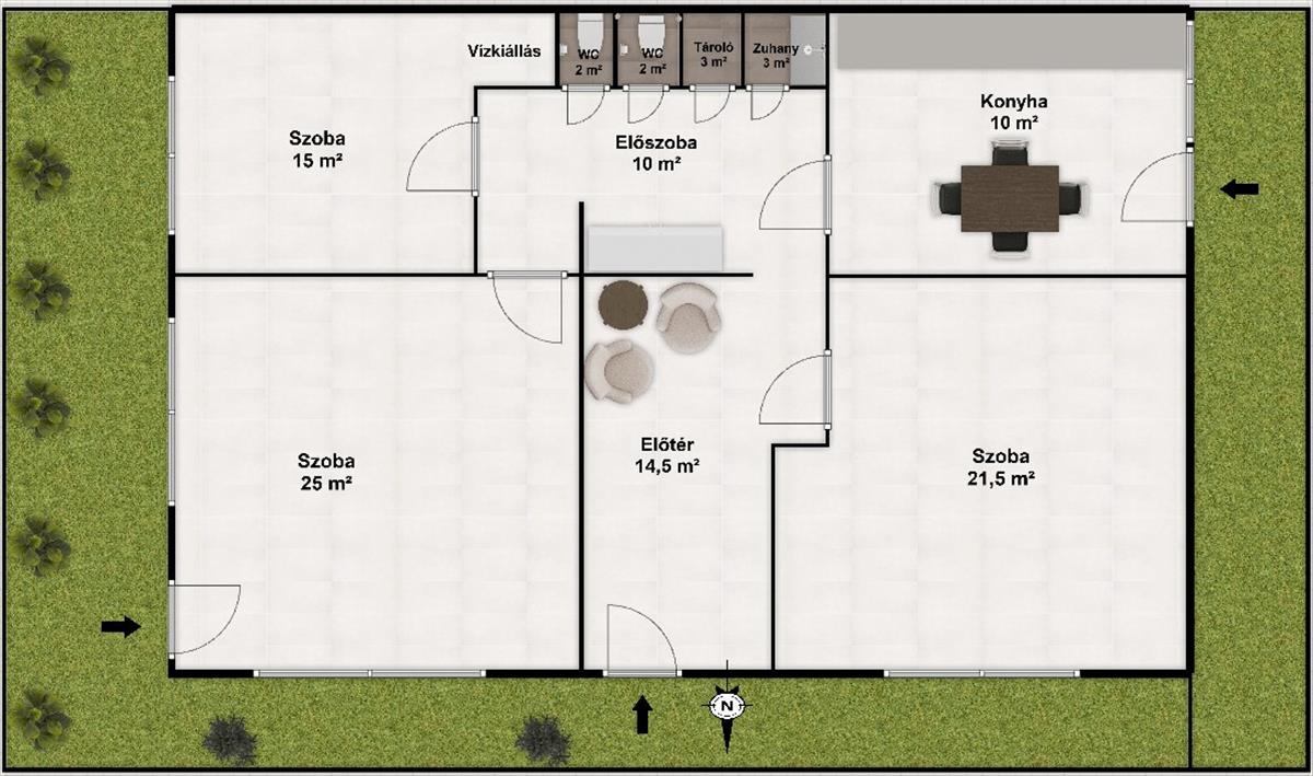 - 3 szoba (további helyiségek könnyedén kialakíthatók)