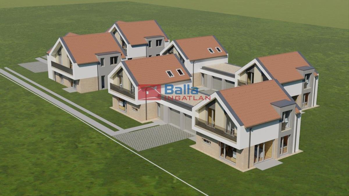 Az ingatlanon 4 családi ház és 2 iroda funkciót betöltő építmény kap helyet. Az irodák: egyik a földszinten, a másik az emeleten helyezkedik el. a lakóegységek kétszintesek lesznek.